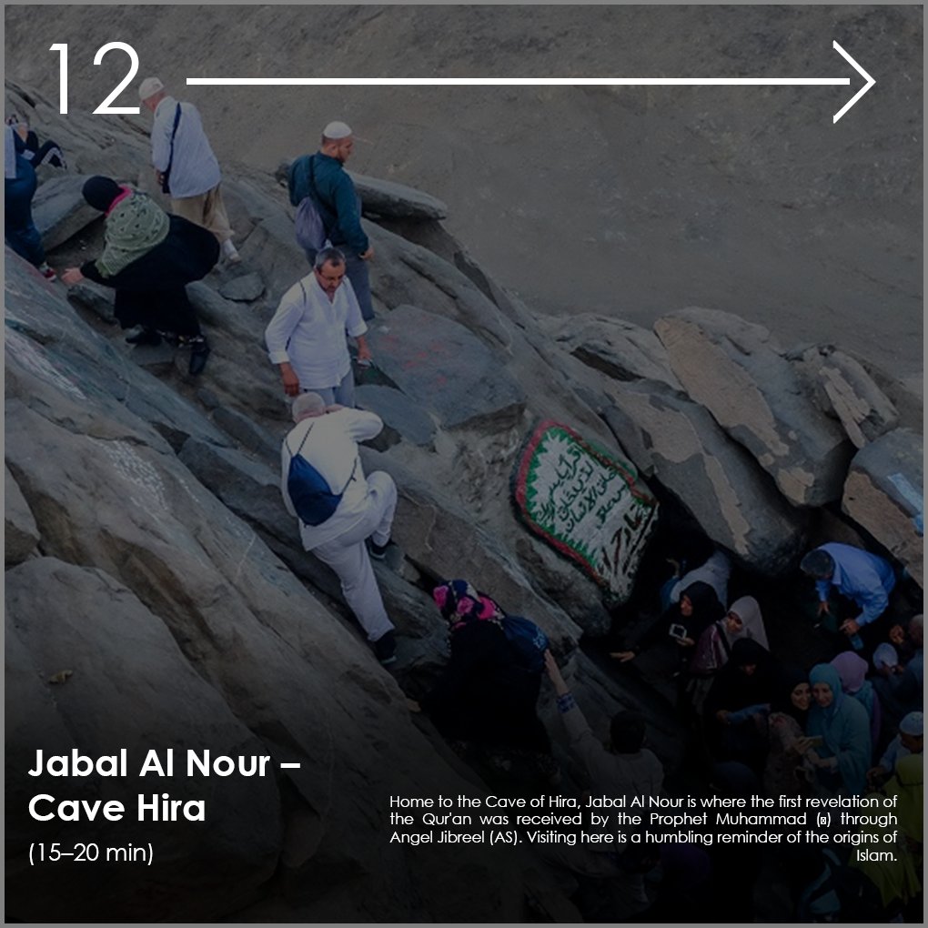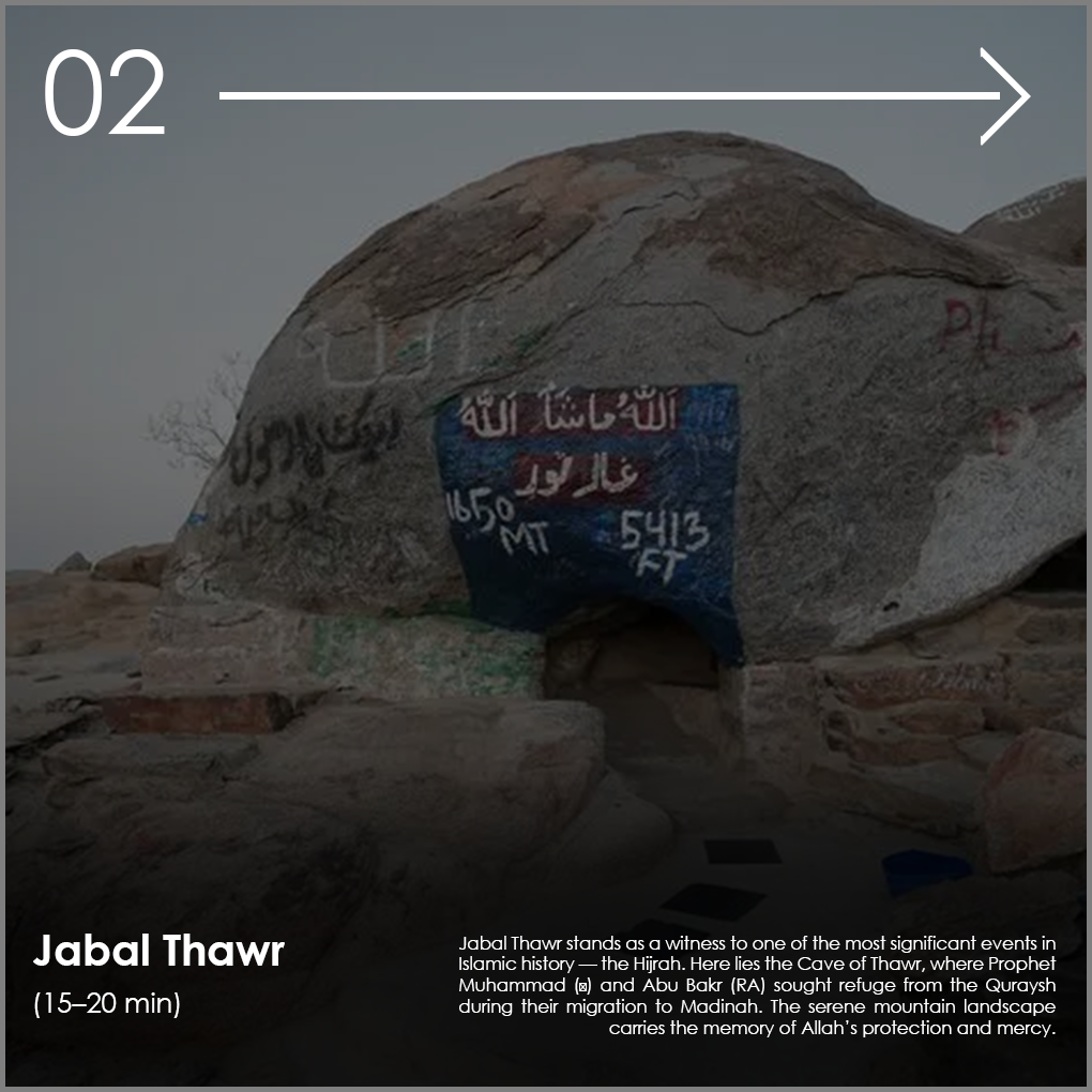 - Jabal Thawr: Visit the mountain where Prophet Muhammad ? and Abu Bakr (RA) sought refuge during the Hijrah.