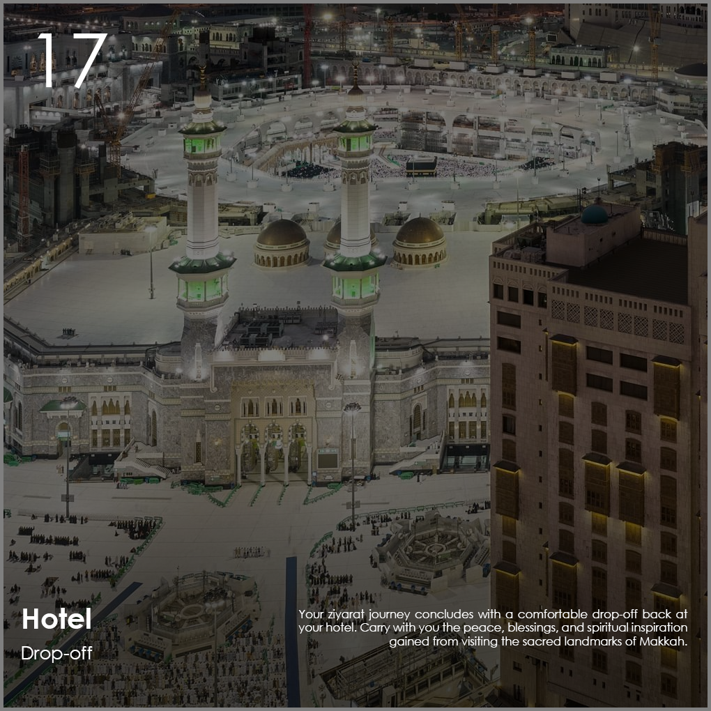 - Guided visit to all major Ziyarat sites in Makkah.