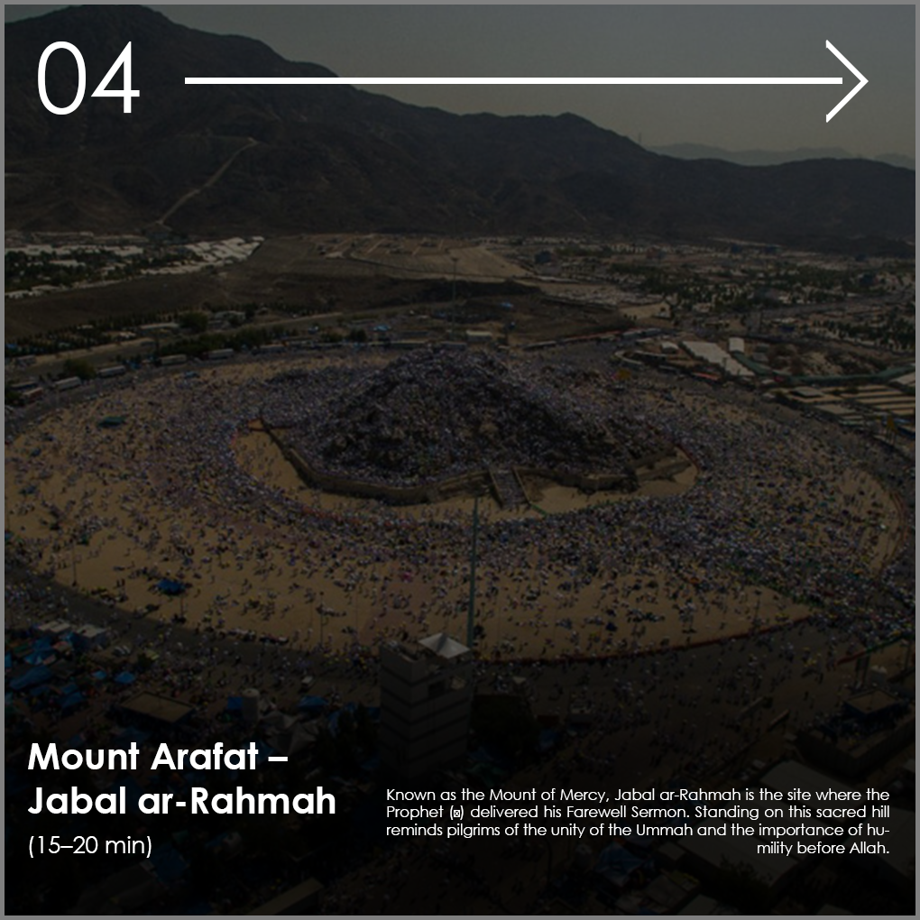 - Mount Arafat – Jabal ar-Rahmah: The revered site of the Farewell Sermon.